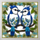 Arte de papel colorido que representa dos agujeros azules encaramados en una rama, recubiertos de un marco decorativo. El diseño muestra una artesanía intrincada, tonos vibrantes y detalles armoniosos que evocan la belleza y la creatividad de la naturaleza.
