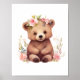 Adorable osito con flores rosadas para el cuarto de tu pequeña. Gran regalo para baby shower. Estos vienen sin marco, enmarcados o como descarga digital