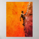 Esta poderosa obra de arte mural presenta a un escalador de rocas masculino musculoso escalando un acantilado irregular contra un vibrante cielo naranja. El marcado contraste entre las texturas ásperas de la roca y el fondo abstracto y suave la convierte en una impresionante pieza de decoración motivacional.