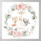 Este caprichoso arte de pared de flora y fauna del bosque es perfecto para enmarcar y decorar el dormitorio de tu hijo. Personalízalo con el nombre de tu hijo de manera fácil y rápida, simplemente presiona el botón de personalizar para reorganizar y dar formato al estilo y ubicación de los textos. Con encantadores animales del bosque y chic flores rosadas y follaje verde en acuarela. (c) The Happy Cat Studio.