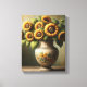 Este vibrante arte de pared captura la belleza de los girasoles elegantemente dispuestos en un jarrón vintage. Con tonos amarillos y verdes soleados y audaces, la paleta de colores irradia calidez y ambiente amigable. ¡Perfecto para agregar un toque de naturaleza y un toque de color a tu hogar!