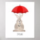 Impresión de arte de guardería con nombre personalizado con un conejo lindo con un paraguas.