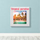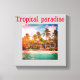 El diseño de un hotel de playa tropical de tela, con árboles y follaje. Esto capta la esencia de una experiencia de vacaciones serena tropical.