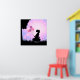 Arte de pared de siluetas de niña con globos y mar
