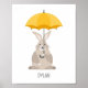 Impresión de arte de vivero con nombre personalizado con un conejo lindo con un paraguas.