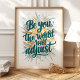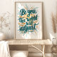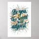 Abraza tu individualidad con esta inspiradora impresión artística 'Sé tú, el mundo se adaptará'. Con una cita audaz y letras a mano en color teal sobre un fondo de texturas de acuarela doradas y azules brillantes, esta pieza es un recordatorio vibrante para mantener la autenticidad. Perfecta para agregar un toque de inspiración y confianza a la decoración de tu hogar o oficina.