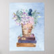 Arte de Pared Libros y Flores Morado Azul