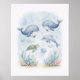 Lleva la hora del baño a la vida con este adorable arte de pared para baño de niños con temática oceánica que presenta ballenas, delfines, tortugas y arrecifes de coral en tonos suaves de acuarela azul. Perfecto para baños de niños con inspiración oceánica o costera.