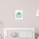 Agrega encanto a tu espacio con este arte de pared para baño infantil de una tortuga en la bañera en estilo acuarela suave en teal y aqua.