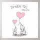 Arte de pared para guardería Sueña en grande para decoración de guardería hermosa en gris y rubor. Con dos elefantes sosteniendo globos en forma de corazón con un letrero Sueña en grande pequeño en fuente decorativa