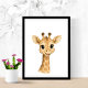 Agregue una dosis alta de alegría a su nursery con esta encantadora impresión de pared de jirafa bebé. Con una sonrisa alegre y colores suaves, esta pieza de arte con tema de jungla trae una vibra juguetona y relajante a la habitación de cualquier niño. Perfecto para regalos de baby shower, espacios para niños pequeños o colecciones de nursery con tema de animales.