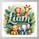 Precioso decorado para guardería con encantadores animales de safari y hojas tropicales con el nombre Liam en destaque. Crea un ambiente acogedor y aventurero perfecto para la habitación de cualquier niño. Impresión de alta calidad lista para enmarcar. Nombres personalizados disponibles - envíame un mensaje para más información.