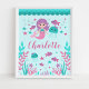Una impresión de arte de pared de temática de sirena dulce para el cuarto de una niña.