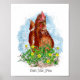 Un pollo sentado en un trébol y flores dibujado a mano. Un regalo lindo para tu madre de pollo favorita.