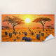 Explore una impresionante escena de sabana africana al atardecer, llena de elefantes, cebras y otros animales salvajes. Ideal para los amantes de la naturaleza y de los safaris. (Este Diseño Se Hizo Con AI). ¡Haga el pedido hoy y acepte la alegría de ir de compras!