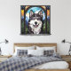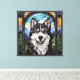 Arte de tela de Alaskan Malamute hecho en modo de ventana de vidrios falsos.
