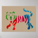 Un colorido diseño de tigre de rayas con esténcil original rojo, púrpura, verde y azul de Zoe Tuong. El fondo es totalmente personalizado para adaptarse a la decoración, ideal para una habitación para niños o para alegrar la casa con un ambiente artístico colorido.