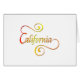 Diseño tipográfico de California con efecto degradado en rojo, amarillo y naranja.