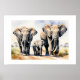 Esta hermosa ilustración de estilo acuarela captura a una pacífica familia de elefantes caminando juntos a través de la sabana africana. Con sombreado suave, tonos naturales cálidos y detalles expresivos, la obra de arte transmite una sensación de fuerza, unidad y calma que se encuentra en los lazos familiares de la vida silvestre. Perfecta para interiores inspirados en la naturaleza, amantes de la vida silvestre o espacios con temática de safari, esta impresión artística de elefantes añade un punto focal elegante y significativo a salas de estar, oficinas, dormitorios o guarderías. El estilo pictórico combina el realismo con una suavidad artística, lo que la convierte en una pieza atemporal para colecciones de arte de animales y naturaleza.