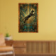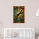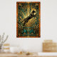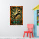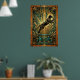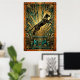 Capturando el poder del movimiento, este gato negro salta a través de un fondo de geometría dorada y mármol teal. Las líneas dinámicas y los motivos de explosión de sol de los años 20 crean un sentido de movimiento y lujo, ideal para agregar energía a una sala de estar o una oficina con estilo.