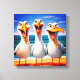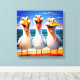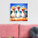 Tres divertidos personajes de gaviotas de dibujos animados en el océano con grandes sonrisas