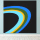 Este moderno y colorido diseño presenta colores vivos como el agua, el azul, el verde del bosque y los anillos elípticos amarillos dorados sobre un fondo negro.