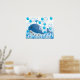 Ballena azul dulce y feliz rodeada de burbujas de jabón para alegrar el vivero o quizás donde el bebé se baño.