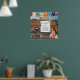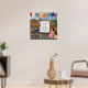 Escena de arte callejero con un poste Polka Dot, gatitos con una amiga embarazada leyendo al poster.