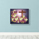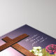 Impresión floral multimedia con cruz y escritura.