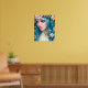 chica bonito con flores en su pelo azul. Hermosos ojos azules con piel pálida cuento arte de fantasía.