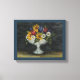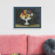 Un ramo de girasoles de campo, margaritas y tulipanes es es el punto central de esta huella de arte de lienzo. Esta imagen añadiría un estilo de arte popular primitivo a una cocina, un comedor, etc... La imagen es de una pintura acuarela original con acentos de lápiz de colores.