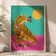 Este cartel de arte funky colorido presenta un tigre audaz emparejado con una delicada mariposa, creando un contraste llamativo entre la fuerza y la suavidad. Renderizado en tonos vibrantes con detalles juguetones y expresivos, el diseño combina un encanto caprichoso con un estilo moderno. Perfecto para agregar un toque de color y personalidad a espacios eclécticos, boho o maximalistas, hace una declaración divertida para amantes de los animales y coleccionistas de arte por igual.