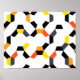 Guay, arte único, moderno y urbano de patrón de ilustracion abstracto hecho con coloridas piezas de formas de decagón. Diseño gráfico moderno y lúdico en colores naranja, rojo, gris y negro.