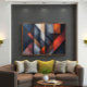 Arte geométrico abstracto con paneles verticales superpuestos. Tonos de azul pizarra, naranja óxido y gris hormigón crean un aspecto industrial sofisticado. La textura desgastada añade profundidad. Ideal para decoración moderna. Añade impacto visual y elegancia cruda a tu espacio con esta pieza exclusiva.