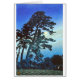 impresión del woodblock de la granja japonesa con el árbol en la oscuridad