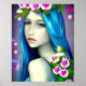 Señora hermosa con flores blancas y moradas en su cabello azul. Ojos azules hermosos con piel pálida arte de fantasía de cuento de hadas. Contenido generativo de arte de IA