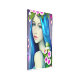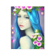 Bonito con flores blancas y moradas en su pelo azul. Hermosos ojos azules con piel pálida cuento de hadas arte de fantasía.