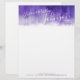 Lápiz de membrete pintado en violeta de arte moderno. Personalizar con sus propios nombres, fecha de establecimiento, dirección e información de contacto, ideal para recién casados para escribir cartas y agradecerle. Impresa de una pintura artística abstracta de Sarah Trett www.sarahtrett.com para www.mylittleedenweddings.com