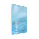 Un paisaje marino sereno se extiende ante el espectador, dominado por una amplia extensión de agua azul que brilla bajo el cielo despejado. El mar, un rico matiz azul, se extiende suavemente a medida que la luz del sol se balancea por su superficie, creando reflejos brillantes. La luz dorada del sol brilla con brillantes destellos sobre las olas, dándole al agua una calidad brillante, casi mágica. A lo lejos, el horizonte se desdibuja donde el mar se une al cielo, y la luz suave y cálida baña la escena, lo que realza el ambiente tranquilo.