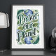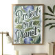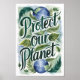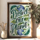 Promociona la conciencia ambiental con este impactante arte mural "Protege nuestro planeta". El diseño presenta un texto a mano en negrita rodeado de hojas verdes exuberantes y una hermosa representación de la Tierra, lo que lo hace perfecto para inspirar un sentido de responsabilidad hacia nuestro planeta. Ideal para decorar hogares, aulas o como un regalo considerado para personas conscientes del medio ambiente, esta obra de arte sirve como un poderoso recordatorio para cuidar y proteger nuestro entorno.