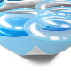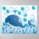 Ballena azul dulce y feliz rodeada de burbujas de jabón para alegrar la habitación del bebé o quizás donde el bebé se baña.