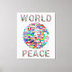 Este arte mural presenta una colección de banderas de diferentes países en todo el mundo en un estilo de collage con las palabras "Paz Mundial" con letras a juego en letra negrita en este estilo de paz no de guerra y fondo blanco tema. Nuestras impresiones se imprimen con la máxima resolución en papel de archivo de algodón-poli para una impresión de larga duración resistente a la desvanecimiento de 40.00" x 48.60". Esta impresión hará que la adición perfecta para iluminar cualquier casa u oficina.