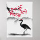 Arte mural pintado con mano tradicional japonés con sakura y garza