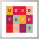 Decoración de su casa con una estampa de arte de temporada de estilo retro, textural con colores vivos y bonitos. vacaciones modernas animadas en esta temporada por Navidades negros con decoración casera en fucsia, rosa, rojo, amarillo mostaza, azul menta y violeta.