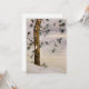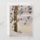 Pintura original de pino y pájaro en la nieve en acuarela de Donna Quesada en una tarjeta en blanco