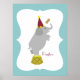 Este cartel para la guardería presenta una ilustración de un elefante parado en una plataforma que lleva un sombrero rojo. El borde es azul. Personaliza el nombre.