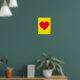 Sencillo corazón rojo cálido sobre fondo amarillo intenso. Idea de decoración de diseño gráfico. Forma estética comúnmente utilizada para representar amor, apoyo, lazos estrechos, amistad y admiración.