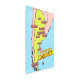 Este mapa ilustrado de Argentina es representado en un vibrante estilo de arte pop. El mapa está delineado en negro y lleno de un color amarillo brillante, puesto sobre un fondo azul con un patrón punteado. Las principales ciudades de Argentina están etiquetadas en cajas azules.