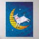 Arte popular, la vaca saltó sobre la rima infantil de la luna, con una vaca manchada, una luna con notas musicales y un cielo estrellado desgastado. "Hey Diddle diddle, el gato y el violín, la vaca saltó sobre la luna."
