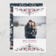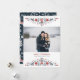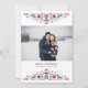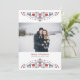 Dos bordes populares enmarcan tu mejor foto de invierno y deseos de fiestas: "Feliz Navidad" aparece en el centro en letras serif rojas, con el nombre(s) de tu familia y el año en tipografía gris clásica.